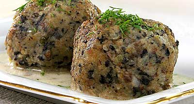 Сухари замочите в молоке. Лук мелко порубите и обжарьте на части масла. Грибы и картофель сварите в подсоленной воде, сразу пропустите через мясорубку, добавьте сырые яйца, размоченные сухари, лук, перец, соль, тщательно перемешайте. Из приготовленного фарша сформуйте тефтели. Тефтели слегка обжарьте на масле, добавьте оставшееся от замачивания сухарей молоко, потушите 5-7 минут. При подаче посыпьте рубленой зеленью.