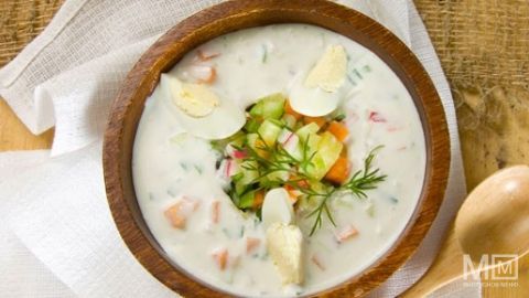 Картофель и морковь сварите, охладите и нарежьте кубиками. Так же нарежьте редис и огурцы. Зелёный лук нашинкуйте и треть смешайте с солью и сметаной, а затем разведите кефиром. Соедините овощи, оставшийся лук, перемешайте и залейте приготовленной заправкой с кефиром. При подаче разлейте окрошку по тарелкам, положите в каждую тарелку нарезанные яйца и оформите окрошку зеленью.