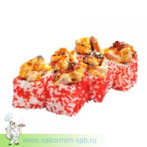 Состав: угорь, сыр, тобико, спайси соус, унаги соус, кунжут