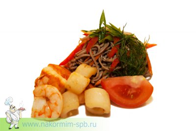 Состав: Морепродукты, порезанные и выложеные на дайкон,с водорослями Тосака, огурцом и лимоном
