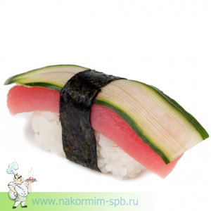 Состав: стружка тунца, копчёный лосось, огурец, сыр