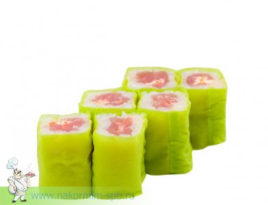 Состав: тунец, розовый соус, зеленая рисовая бумага