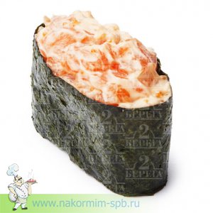 Состав: Айсберг, краб, тобико, крабовый соус, огурец, дайкон, паприка, тобико красная, лимон, зелень