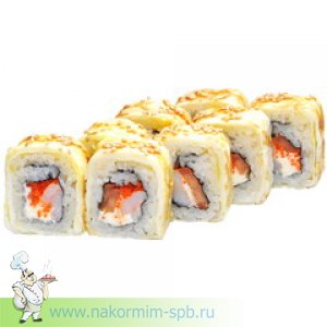 Состав: сыр, лосось, угорь, тобико, авокадо, сухари "панко", кляр "темпура"