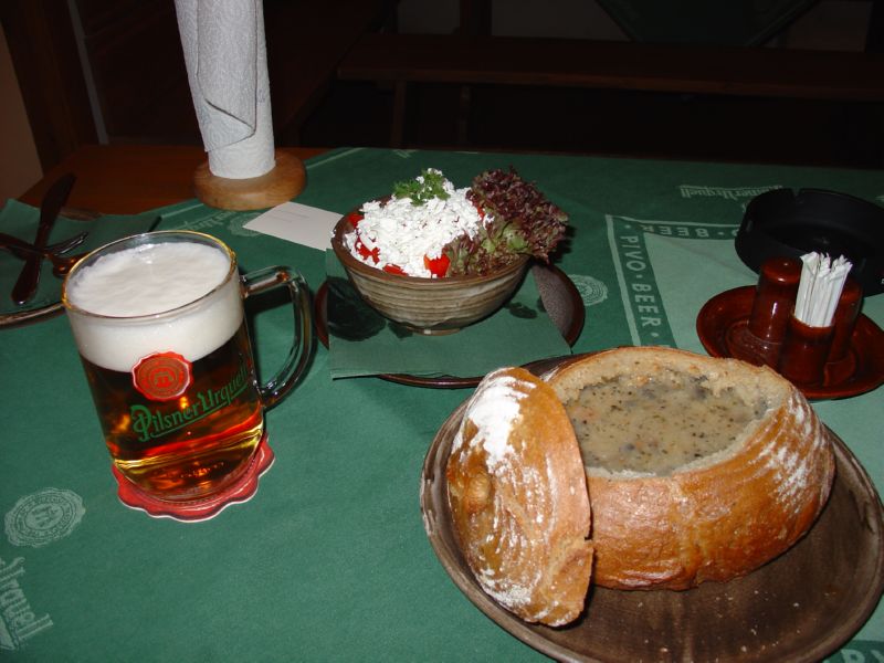 Суп картофельный в хлебной миске (Чешская кухня)
