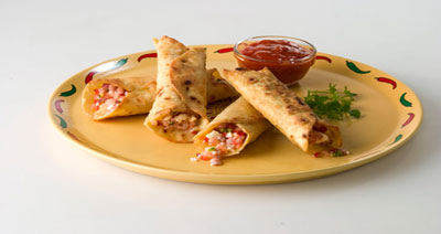 Пшеничную муку смешайте с кукурузной, добавьте яйцо и постепенно влейте столько воды, чтобы получилось крутое, пластичное тесто. Оставьте его на 20 минут, затем сформуйте из теста шарики величиной с грецкий орех. Раскатайте каждый шарик в лепешку толщиной 0,2 см. Выпекайте приготовленные лепешки на сухой сковороде с толстым дном до золотистого цвета, перекладывая листами пергамента, уложите тортильяс в стопку, заверните в полотенце и поставьте в теплое место. Для начинки ветчину и лук нарежьте мелкими кубиками. Жгучий перец разрежьте пополам и, удалив семена и перегородки, измельчите. Очищенные от кожицы и семян помидоры мелко нарежьте. Творог смешайте со сливками, солью, белым перцем и подготовленными овощами. Выложите начинку на лепешки, сверните их трубочкой, скрепите деревянными шпажками и слегка обжарьте на разогретом масле. Подавайте тортильяс с мексиканским соусом.