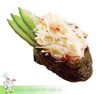Состав: Рис, мясо краба, огурец, авокадо, майонез японский, кунжут