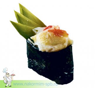 Состав: Рис, гребешок, майонез японский, икра летучей рыбы, огурец